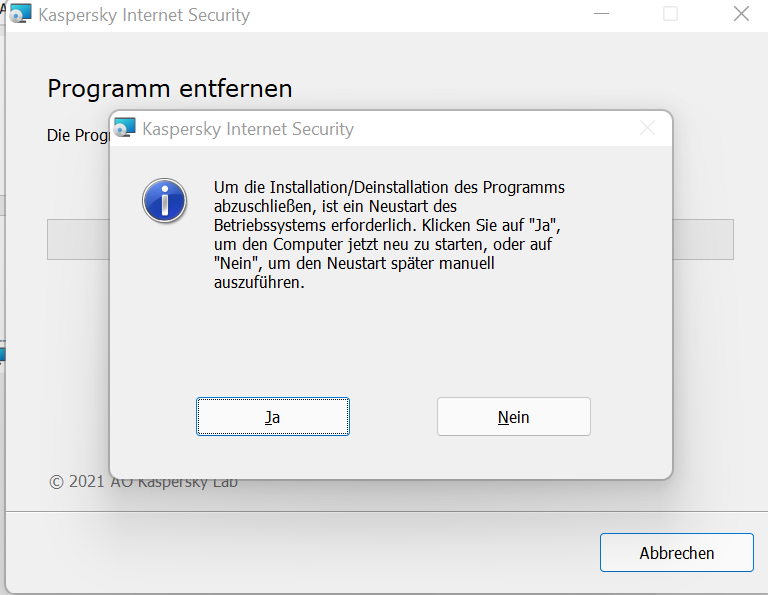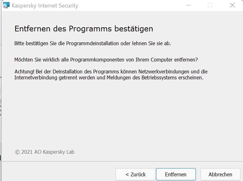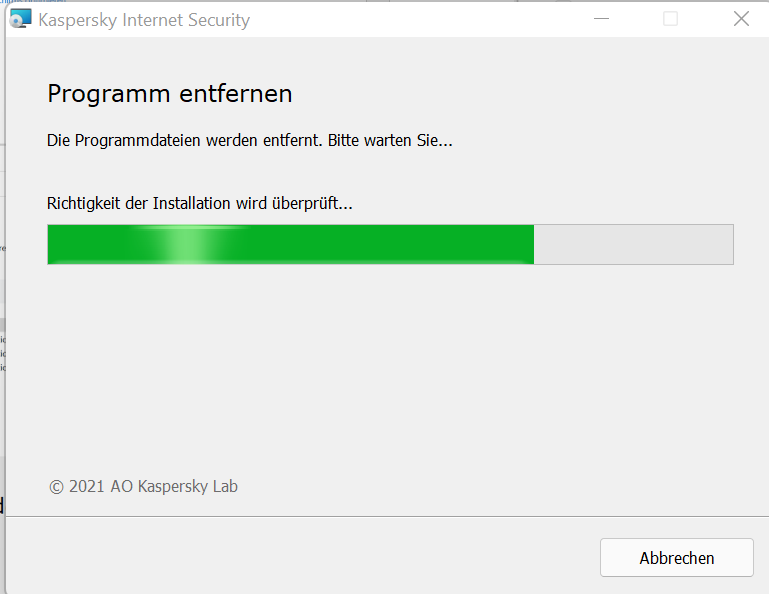 Nu wordt Kaspersky daadwerkelijk verwijderd. Kan even duren. Geduld.