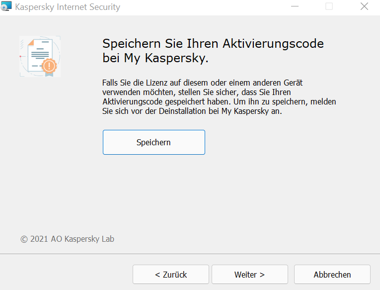 In dit scherm word je gevraagd of je de activeringscode voor later gebruik wilt opslaan. Dit hoef je niet te doen (in het ergste geval heb ik dan weer voor je).